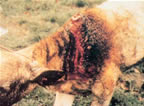 animal (usually some sort of livestock, but an injured soldier or a human baby isn’t out of the question) in search of a place to lay her eggs. She prefers wounds, but may also settle on using the eyes, nostrils, or anus of her victim to construct a nursery. Next, the 200-or-so eggs hatch, and the larvae start burrowing into their host’s flesh. Once they’re situated in their cozy little meat tunnels, the infant flies continue to feed and grow. The bigger they get, the more they have to eat. Eventually, this creates a whole lot of festering and oozing on the host, which attracts more flies, which lay more eggs, which do more feeding and burrowing. It’s a brutal onslaught, and a swift one. Screwworm larvae are reportedly capable of consuming an entire sheep or dog from the inside out in five to seven days.
