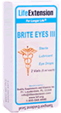 A popular treatment for cataracts, glaucoma, and other macular degeneration problems is N-acteyl-carnosine eye drops, also known as dipeptide eyedrops. The most commonly available product of this type is made by the Life Extension Foundation and called Brite Eyes III (see product picture in margin at right). There are some amazing anecdotes about carnosine eye drops and the speed at which they can relieve some forms of macular degeneration, so it is highly recommended, but it is also advised that the lack of antioxidants, minerals, and essential fatty acids which caused the problem in the first place be addressed as well. See the article at the bottom of the page for a full description of dipeptide eyedrops.
