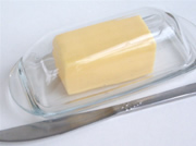 Turn down the heat until the butter just boils and continue to cook at this heat. Do not cover the pot. The butter will foam and sputter while it cooks. Whitish curds will begin to form on the bottom of the pot. The butter will begin to smell like popcorn after a while and turn a lovely golden color. Keep a close watch on the ghee, as it can easily burn. After a while it will become a clear, golden color. You will have to take a clean, dry spoon to move away some of the foam on top in order to see if the ghee is clear all the way through to the bottom. When it is clear and has stopped sputtering and making noise, then it needs to be taken off the heat. Let it cool until just warm. Pour it through a fine sieve or layers of cheesecloth into a clean, dry glass container with a tight lid. Discard the curds at the bottom of the saucepan. The ghee is burned if it has a nutty smell and is slightly brown.