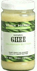 Ghee can be kept on the kitchen shelf, covered. It does not need refrigeration. The medicinal properties are said to improve with age. Don’t ladle out the ghee with a wet spoon or allow any water to get into the container, as this will create conditions for bacteria to grow and spoil the ghee.