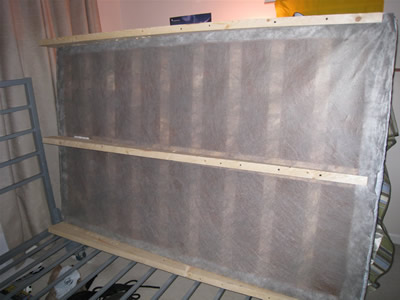 1. Buy a wedge of foam the entire size of the bed. This is the easiest and very stable but one of the most expensive methods. Half wedges of foam, usually around 24x24" and 6 to 12 inches high can also be used and are commonly available for as little as $20. While this does raise the head and some internal organs and can certainly help those who sleep on their back, it does not provide the same benefit as wedging the entire sleep surface plus will cause the back to bend sideways if sleeping on the side. Whole bed foam should be placed between the mattress and box springs since with the weight distributed by the mattress it does not compress as much plus suffers less wear so cheaper grade foam can be used. Whole bed wedge foam can be purchased here.